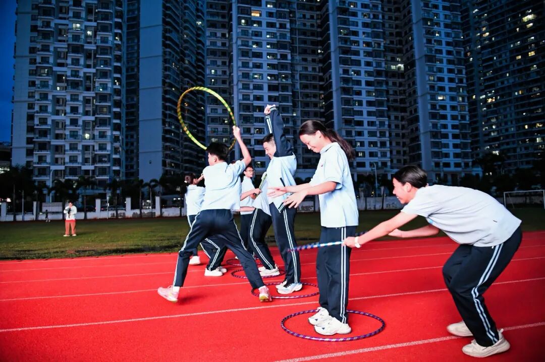 积分竞技环节将活动推向高潮,三项精心设计的任务,让团队默契在实践中不断升级。 在“传递呼啦圈”环节,同学们手拉手围成圆圈,通过身体的灵活配合让呼啦圈依次传递。当呼啦圈绕过每一个人时,眼神的示意、动作的协调、轻声的鼓励,都在无声中传递着信任,原本疏离的距离在欢笑中悄然消融。 “五比任务”则成为创意的秀场。“比想法多”时,同学们脑洞大开,奇思妙想如泉水般涌出;“比造型亮”时,各小组各显神通,用夸张的姿态展现团队特色。每一项挑战都打破了思维的局限,让大家在展现自我中感受集体智慧的力量。 “齐心协力往返跑”中,呼啦圈障碍成为考验团队协作的试金石。有的小组凭借精准的节奏把控稳步前行,有的小组在失误后迅速调整策略、互相打气。无论最终成绩如何,每个人都全情投入,用行动诠释着“不抛弃、不放弃”的团队精神。